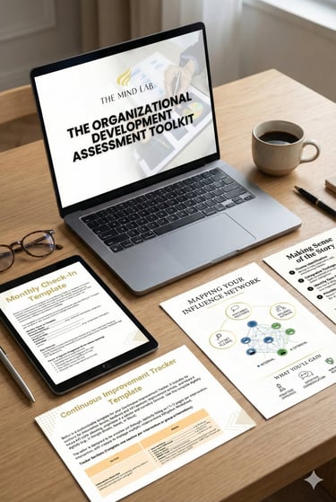 The OD Assessment Toolkit gives you the exact tools, templates, and expert guidance to diagnose and fix what’s not working in your company from the inside out.
