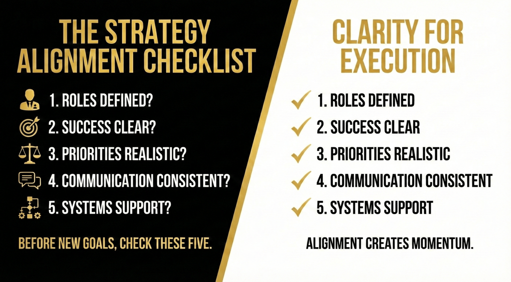 Strong execution starts with clarity, not ambition. Before you set your next big targets, run your team through this 5-point alignment checklist to ensure your structure can support your strategy. Learn why most breakdowns aren't about motivation, but about undefined roles, unclear communication, and friction in your systems.