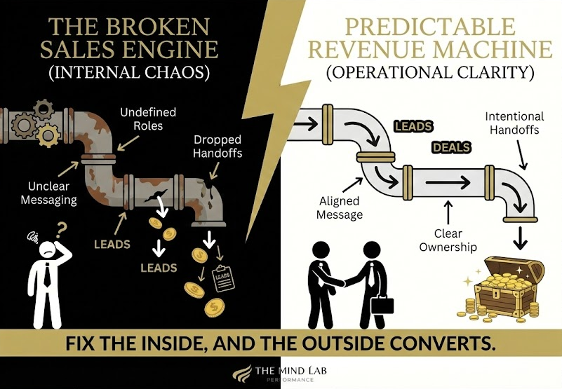 Here is the hard truth we deliver to founders at The Mind Lab: In many small and growing businesses, sales problems don't start with effort or skill. They start with what is happening inside the organization.